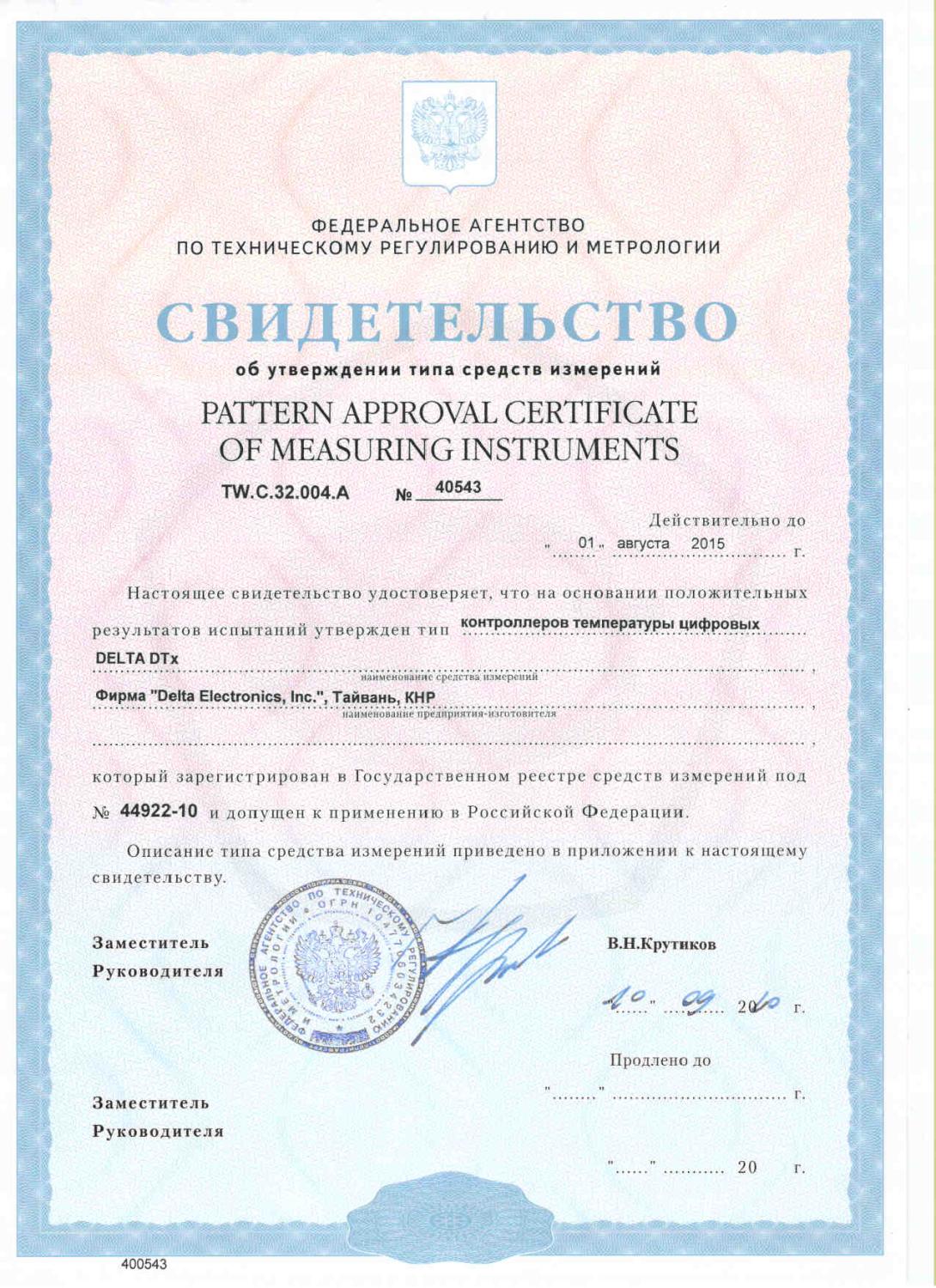 Delta DTx. Контроллеры температуры цифровые. Свидетельство об утверждении типа средств измерений