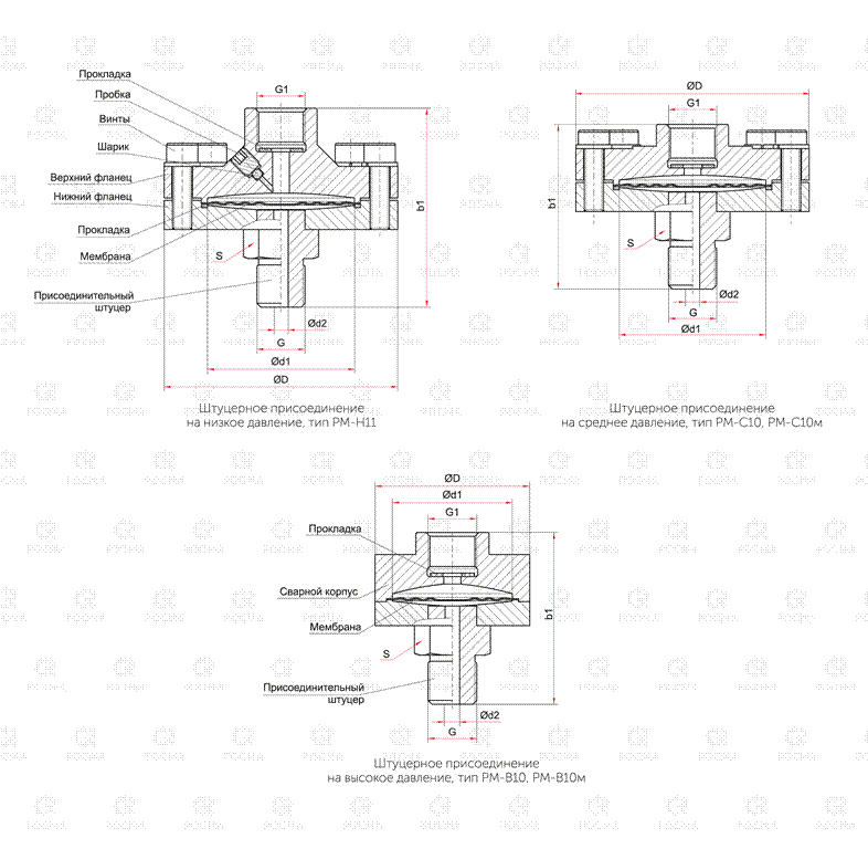 Материал корпуса и мембраны: Нержавеющая сталь 08Х17Н13М2