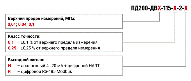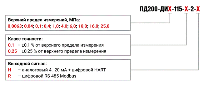 · ДИ: от 0,0063 МПа до 25 МПа;· ДВ: от -0,01 МПа до -0,1 МПа;· ДИВ: от ±0,03 МПа до 2,4 МПа;· ДД: от 0,1 МПа до 10 МПа;· ДА: от 0,0063 МПа до 2,5 МПа. |