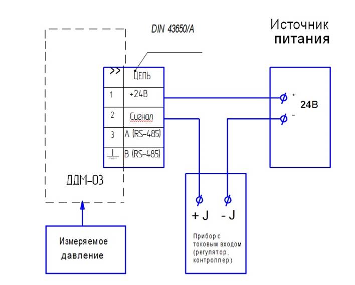 Схема подключения датчика ДДМ-03-Ех на объекте с применением взрыво-защищенного источника питания