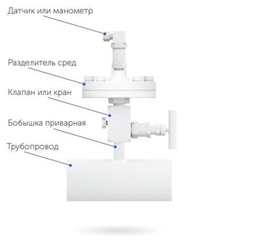 Для защиты чувствительного элемента датчика давления от контакта с агрессивной, вязкой или абразивной измеряемой средой рекомендуется устанавливать прибор в сборе с мембранным разделителем сред, заполненным разделительной жидкостью.