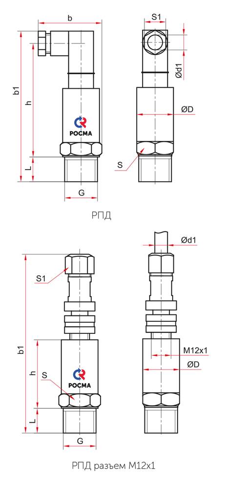 * — кроме РПД с разъёмом М12х1 и РПД с классом точности 0,25
