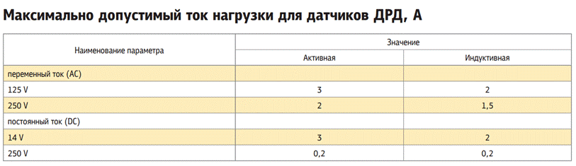 Датчики-реле избыточного давления ДРД-Н и вакуумметрического давления ДРД-Т предназначены для коммутации мощности не более 300 ВА (cos φ=0,6) при напряжении 220 В для цепей переменного тока с частотой 50 Гц и 70 ВА при напряжении 24 В для постоянного тока.