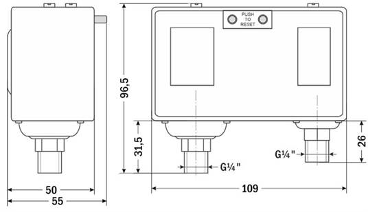- Два реле давления (низкого давления и высокого) в одном корпусе