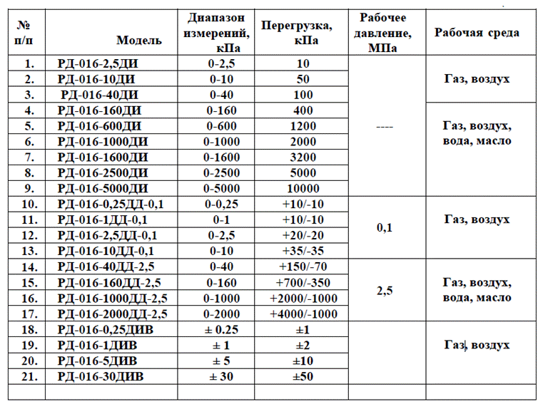 · Низкие пределы измерений (избыточное, вакуумметрическое, перепад давлений).